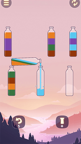 1. 整体就是围绕“分离颜色”展开。不同颜色的液体互不相容,你的任务就是把它们分别倒入正确的瓶子,让每个瓶子都装满同一种颜色。