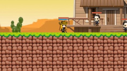 1、知道为什么老玩家都管这叫"像素戈壁美学"吗?夕阳把仙人掌的影子拉得老长,沙尘暴里若隐若现的幽灵驿站,连子弹打在水塔上渗出的水流都做了动态效果。